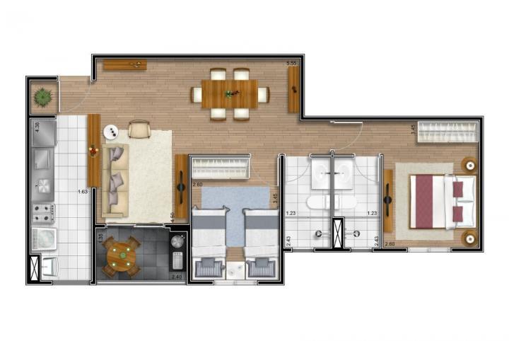Características: Academia, varanda, área de serviço, churrasqueira, piscina, salão de festas, porteiro 24h